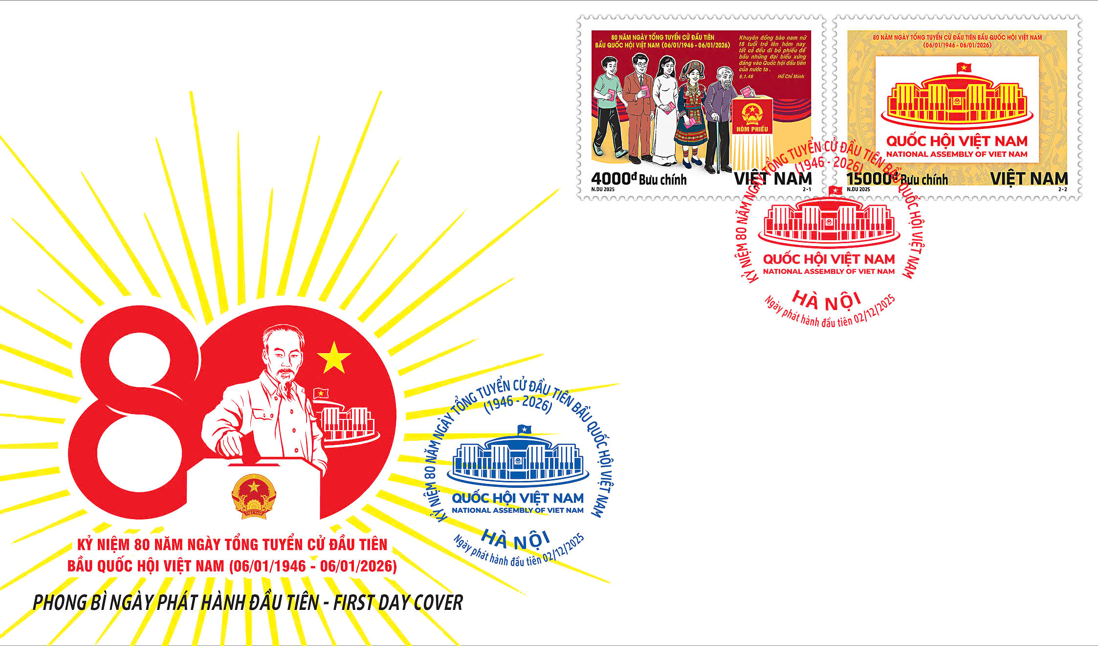 To honor this significant milestone while broadening public awareness and appreciation among cadres, Party members, and all segments of society regarding the historic significance of the first Election Day of the National Assembly of Viet Nam, the Ministry of Science and Technology proudly issues the commemorative stamp set “80th Anniversary of the First General Election of the National Assembly of Viet Nam (1946 - 2026)”. The set comprises two stamps with face values of VND 4,000 and VND 15,000.
